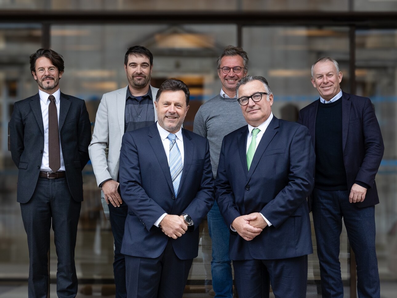 Florent Morillon et Christophe Vera ont été élus président et vice-président du Bureau national interprofessionnel du cognac (BNIC) le vendredi 24 novembre 2023. Au second plan :  Raphaël Delpech, Anthony Brun, Hervé Bache-Gabrielsen et Eric Le Gall. ©BNIC